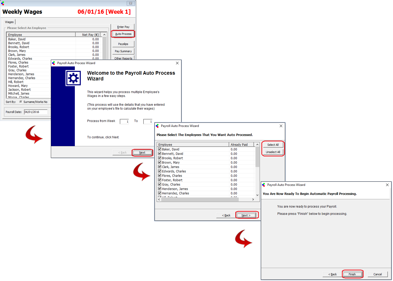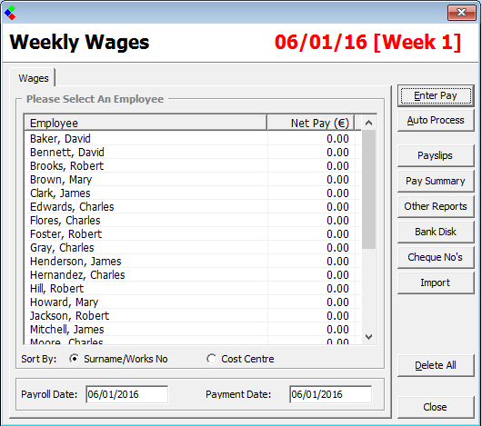 Once the Company has been created and all employees have been added, the payroll or wages can be processed.