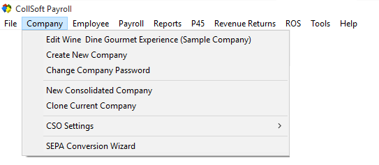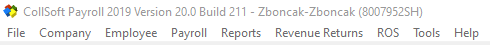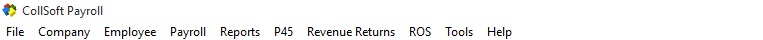 The CollSoft payroll Menu bar offers access to complete functionality through each Menu item.