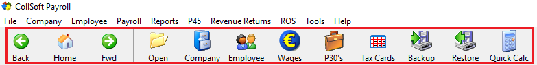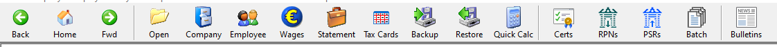The Toolbar is made up of a number of icons which offer quick access to the more commonly used daily functions of payroll processing.