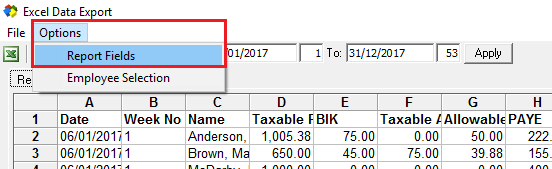 - Select the payroll dates, and/or week numbers, as required for your reporting requirements.