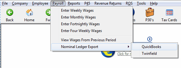 Quickbooks - Payroll Link: Select the Nominal Ledger Export