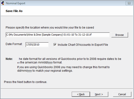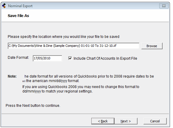 For Example: If you had previously exported all the wages between 1st Jan and 15th Jan, then the next export file should commence on 16th Jan. If you were to run the next export from 15th Jan then there is the possibility that wages on the 15th would be exported into QuickBooks twice!