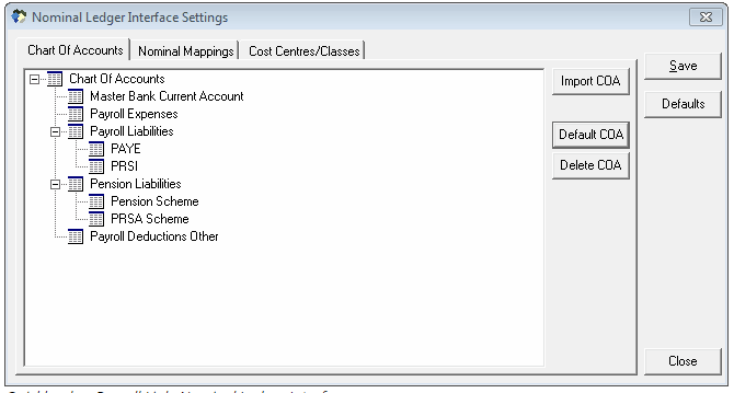 Before you can export any data from CollSoft Payroll you must define the nominal accounts that the various entries get posted to.