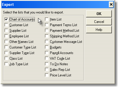 3. Select Chart Of Accounts from the Export Window.