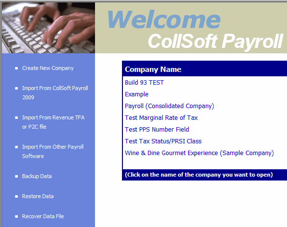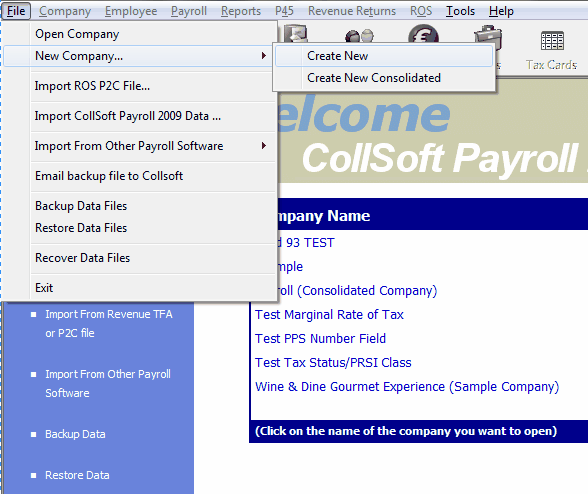 The idea of a company is central to CollSoft Payroll. You must create a company before you create any employee's or enter any wages. The Company object holds information regarding your company such as name, address, bank details, types of additions/deductions etc.