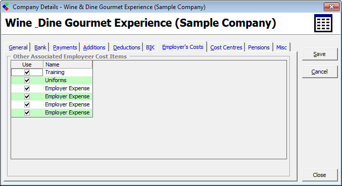 These “Employer Costs” are not payroll items, but are simply a tool that you can use to gain a more accurate picture of your staff costs.