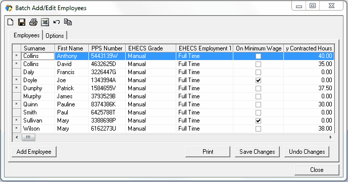 By default Payroll will designate each employee to be a “Full Time Production Worker”, but these settings can be changed via the “CSO Employee Settings” screen.