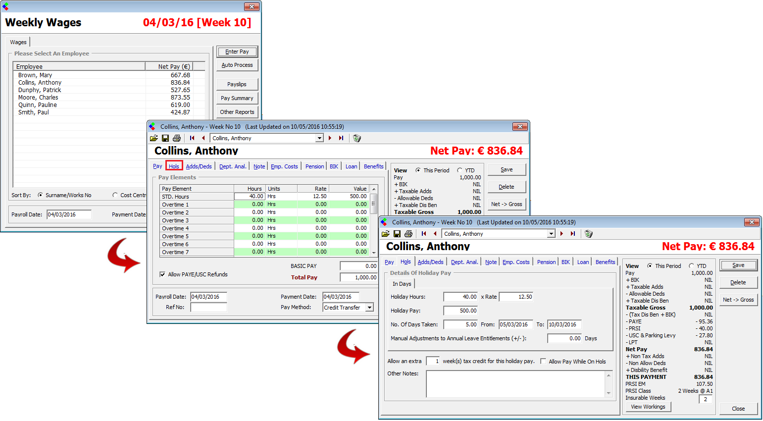 Once you have the holiday pay entered as above you can click save and close and the wage including holiday pay will be saved for that employee.