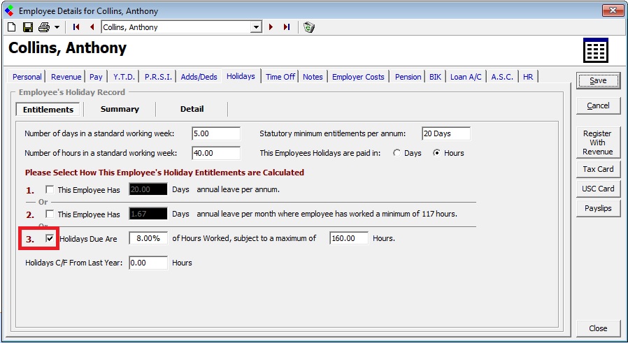 The Entitlement screen we have just gone through, this is were you select how an employees Holidays are to be Calculated.
