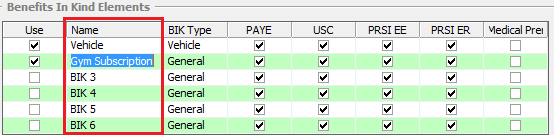 Set which statutory deductions the benefit is subject to; PAYE, USC, PRSI Employee, PRSI Employer. By default all deductions are flagged, simply unflag each deduction that the benefit is not subject to.