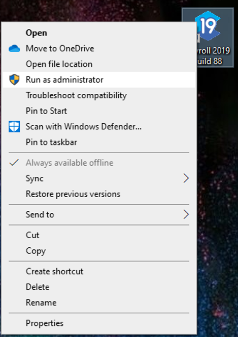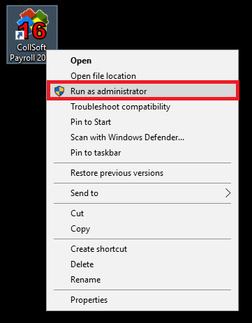 - Right-click on the CollSoft Payroll icon on the desktop