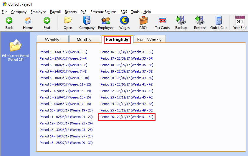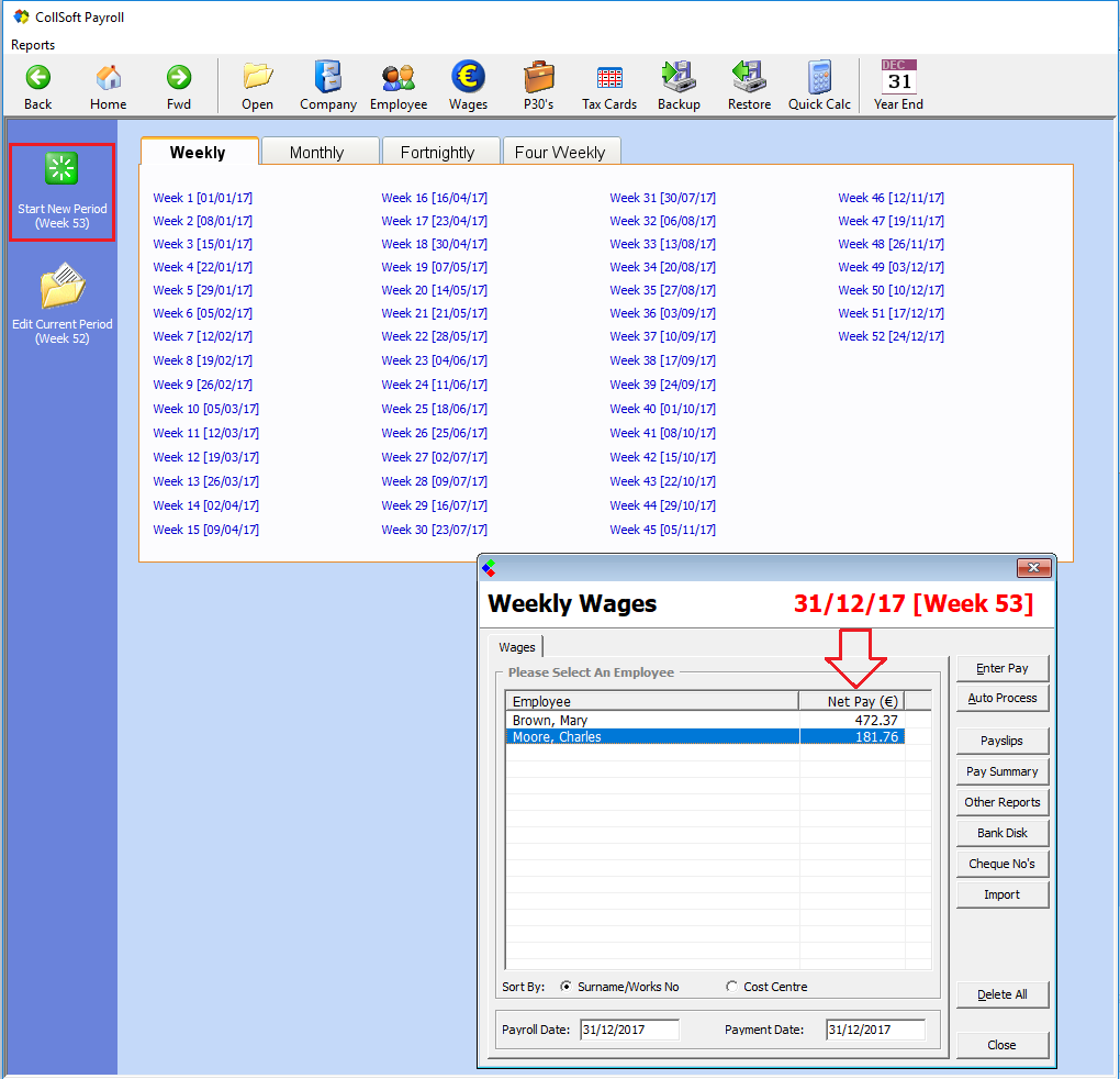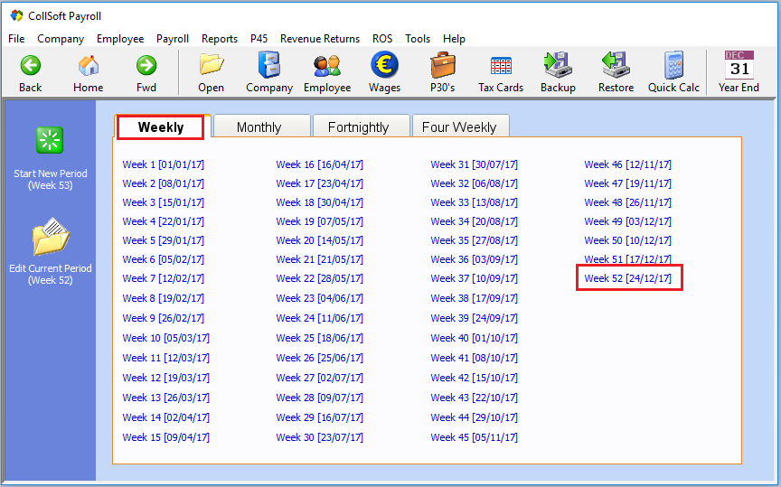 If your payday falls on the 31st December, you may need to run a Week 53. If this is applicable, to your payroll please refer to the CollSoft article in the Knowledge Base Week 53 for further information.