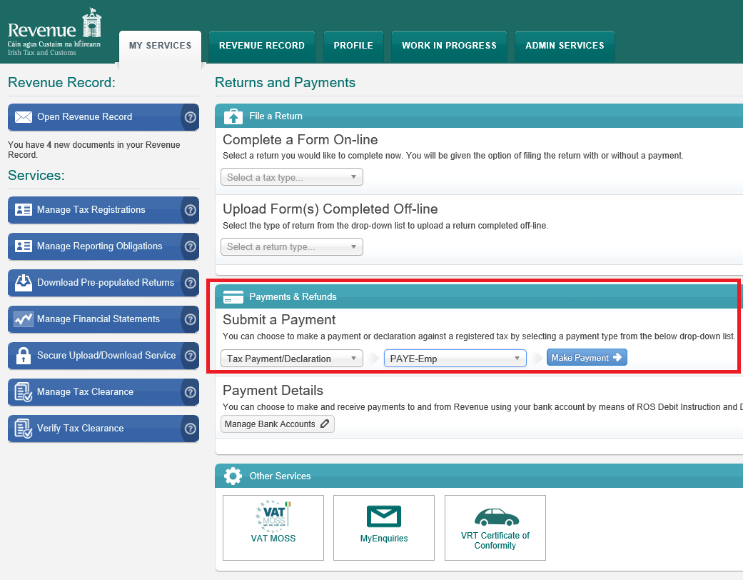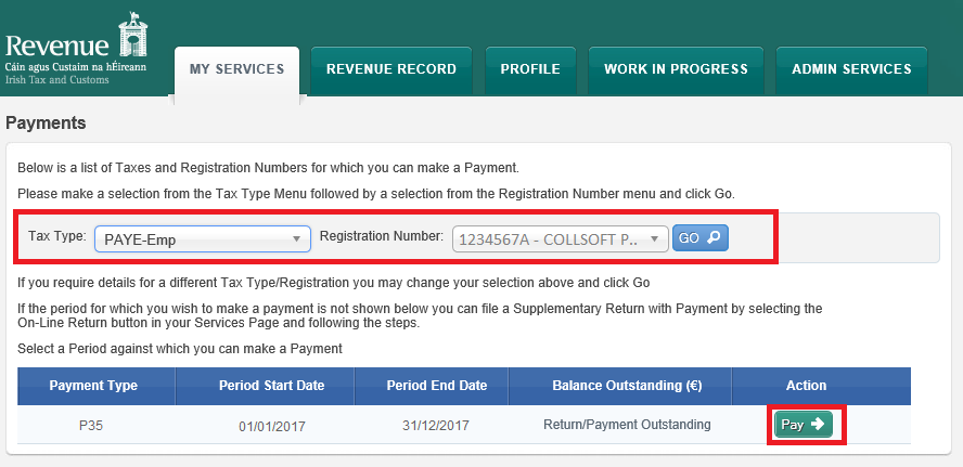 - As all PAYE returns are now submitted the option to make a P30 or P35 payment will be available to you.