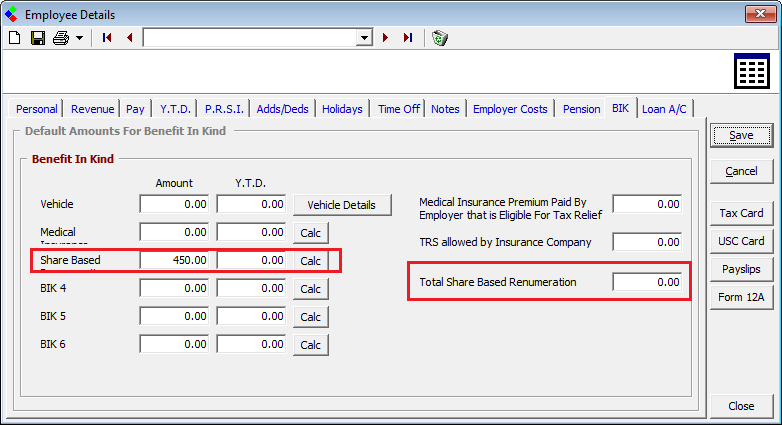 Share Based Remuneration - Setting up the Benefit in Kind