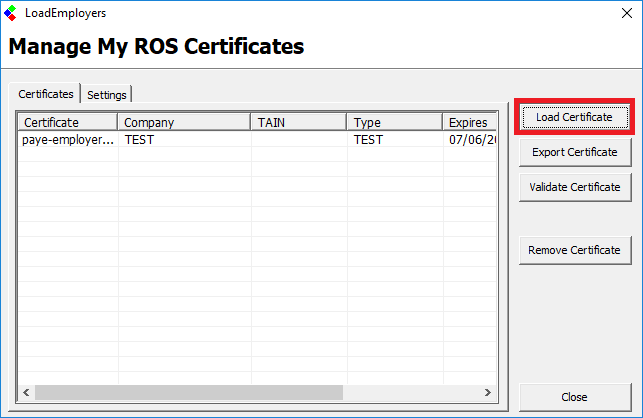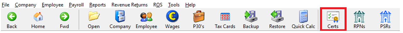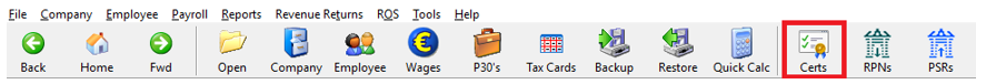 Before you can start updating Employee RPN's or doing Payroll Submissions to revenue you have to Load your ROS Digital Certificate into the Payroll software.