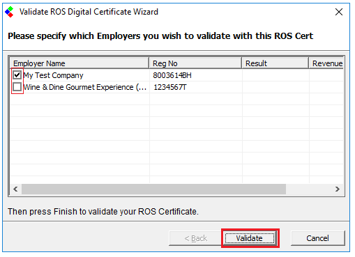 Otherwise, leave the option as Employer ROS Cert and click Finish. The following screen will appear.