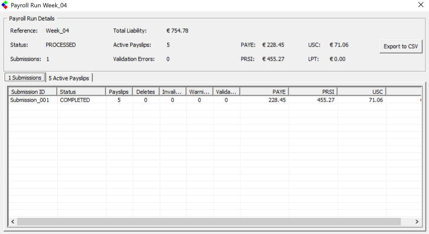 Now, click into the "Active Payslips" tab where you will be shown the list of all currently active payslips for that Payroll Run;