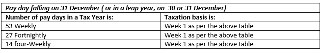 | Number of pay days in a Tax Year is: | Taxation basis is: |