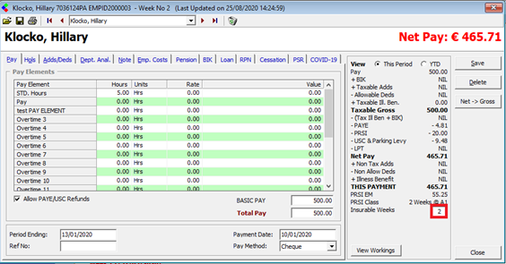 In terms of PRSI, as the employee will not be paid in Week 1, one of the following options should be used to correctly record the insurable weeks for PRSI purposes: