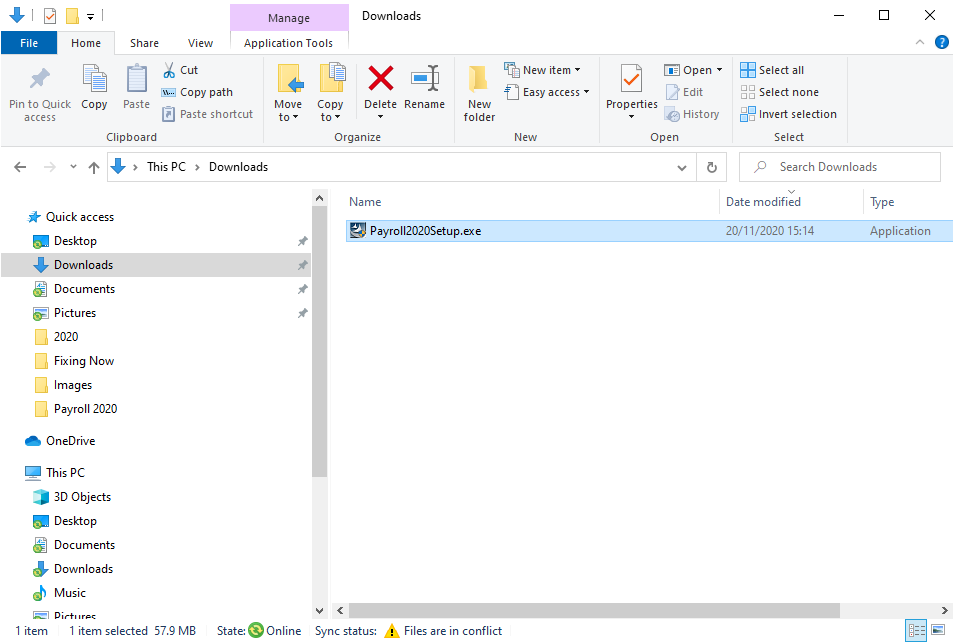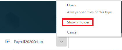A windows dialog box will appear showing the file Payroll2020Setup.exe