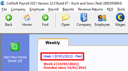 If you look at the screenshot below, Week 1 has been submitted to revenue successfully. You can see this by the inclusion of the word Filed after this week.