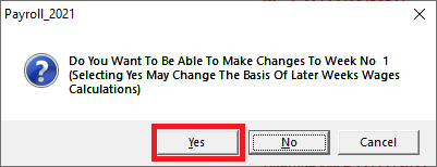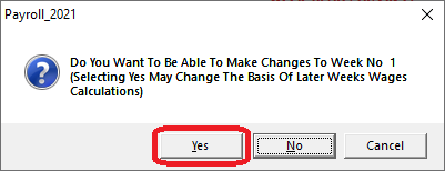 If the Week you want to change is a different week or if it is Monthly or Fortnightly payroll, just click on the Period you want to change and the message below will appear.