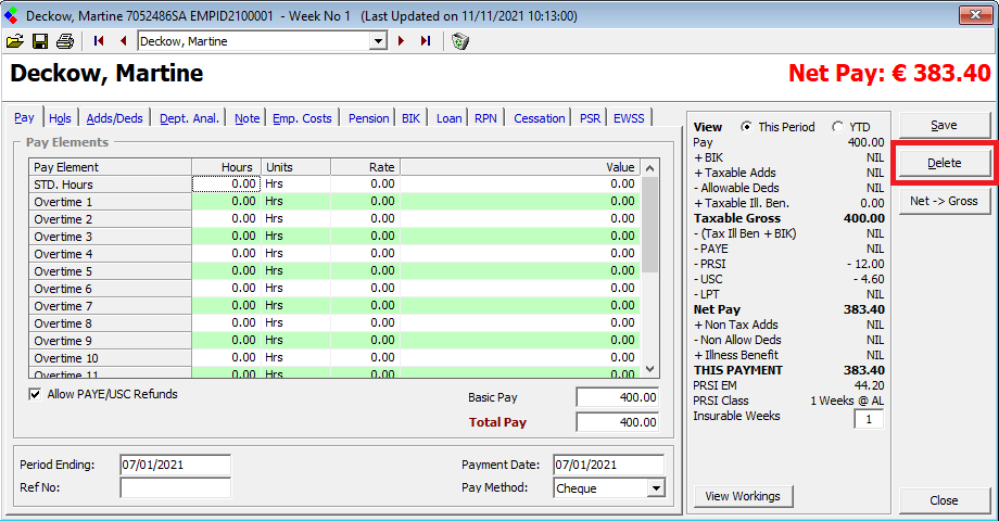 From within Collsoft Payroll, it is possible to Delete a wage that you have already submitted to revenue.