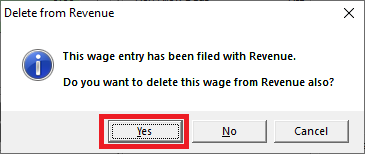 We want to delete the wage from the payroll and from revenue, so we click Yes on this message.