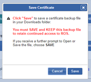 The “Save Certificate” dialog screen will now appear. Press the “Save” button to save a copy of your ROS Certificate on your PC.