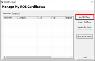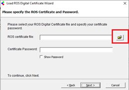 Press the “Load Certificate” button to start the ROS Digital Certificate Import Wizard and press “Next”