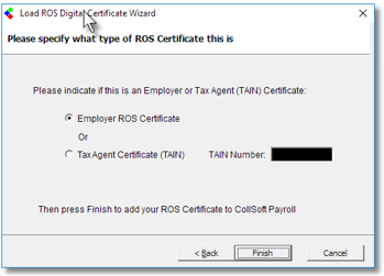Most users will have regular Employer certificates. If you are using a Tax Agent Certificate then you will need to enter your TAIN Number as well.