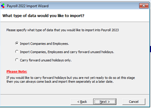 Option 2: Import companies, employees and carry forward unused holiday. Once you have made your selection, click the “next” button.