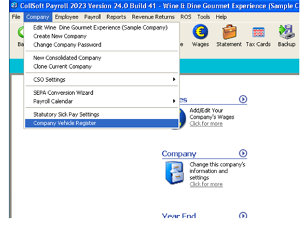 on their vehicles CO2 emissions and enter it into CollSoft Payroll.