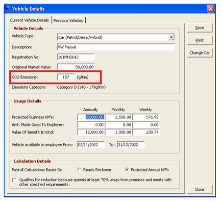 Please Note: If you do not enter any CO2 emissions data for a vehicle, then CollSoft Payroll will automatically