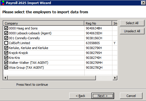 Then you will be asked which companies to import - choose those you want to import now. You can always come back later and import others.
