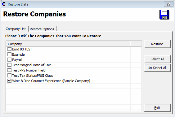 Here you can pick and choose the companies that you wish to restore. Only companies that are ticked will be restored. When you have chosen which companies you wish to restore, hit the Restore button and the restore will begin. When the restore process is completed you will receive the following message.